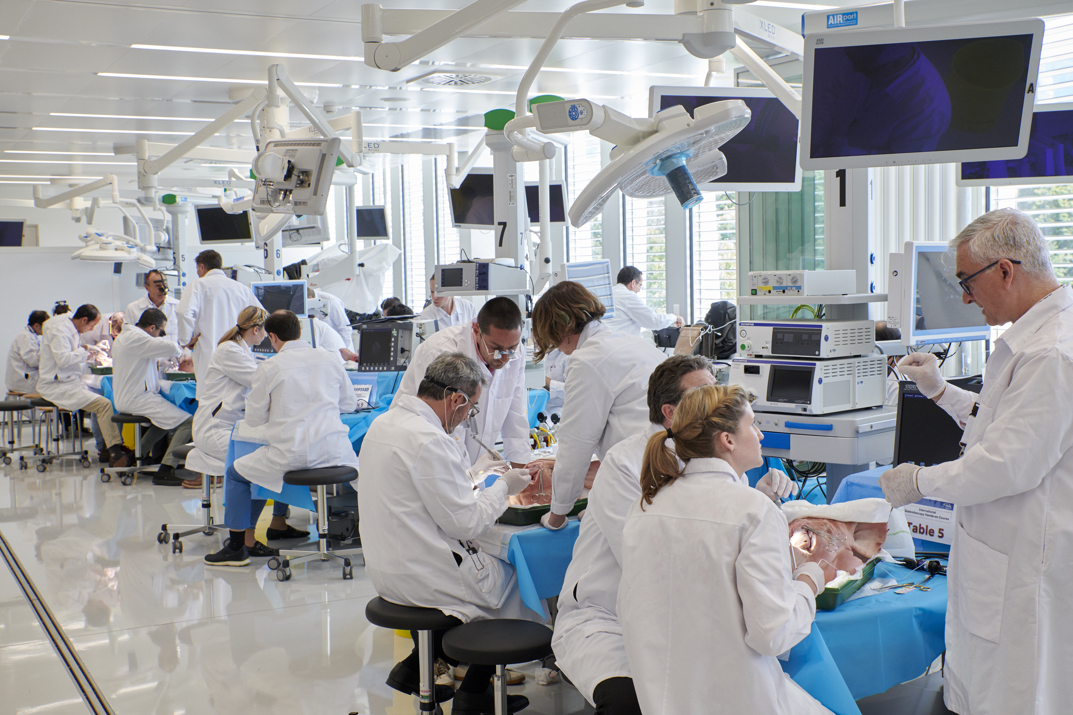 The European Salivary Gland Society support also the European Sialendoscopy Training Centre (ESTC) created in 2002 in Geneva. This centre aims to train clinicians and procedures associated with diagnostic and therapeutic sialendoscopy, to organise international courses in order to allows for exchange of knowledge, experiences and advances gained by clinical leaders disseminated around the world. The courses consist in hands on training on pig heads, conferences, debates, and live surgery.